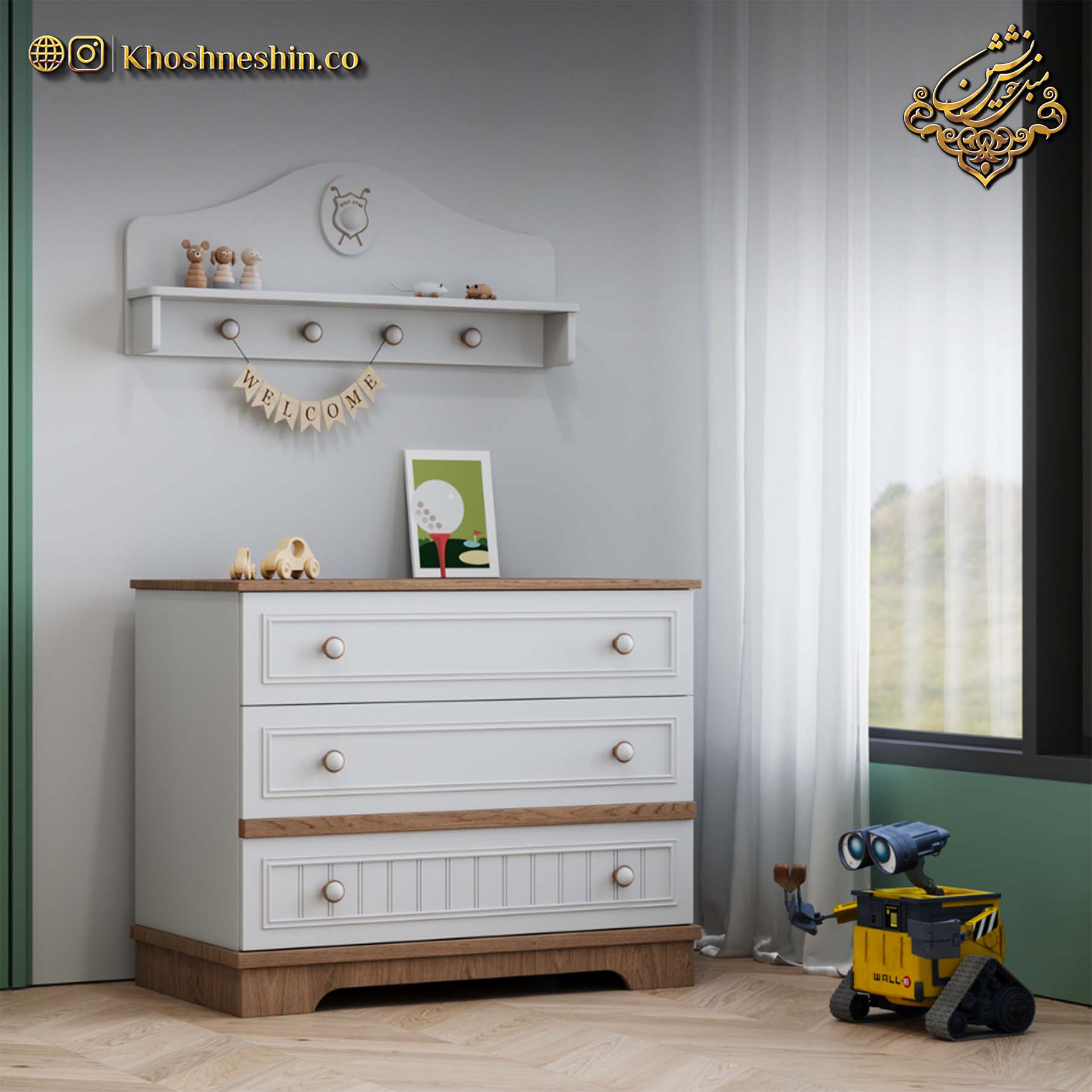 دراور سه کشو گلف استار | طرح نوزاد سفید قهوه ای