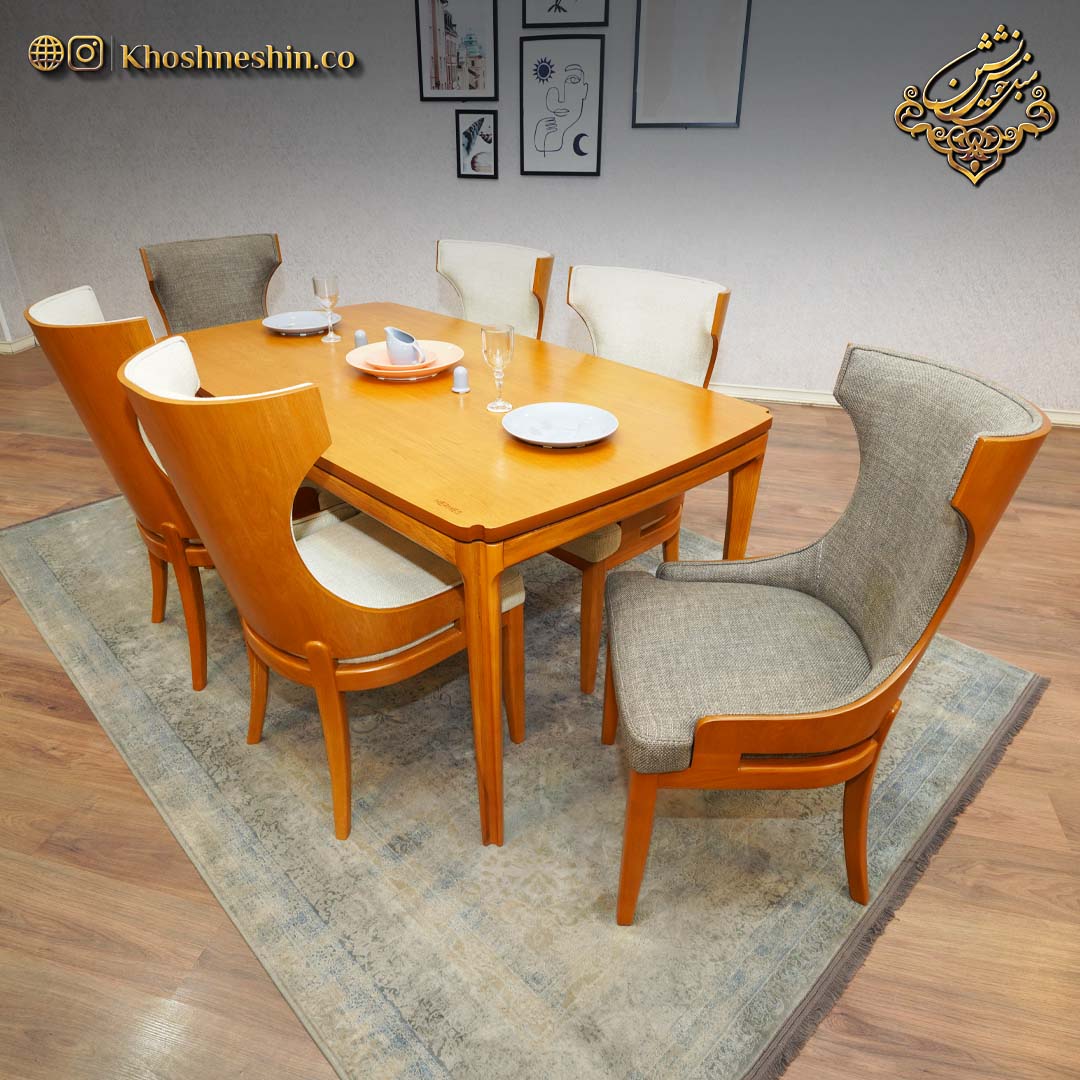 ناهارخوری مدل هکتور یکی از ست های خاص و با کیفیت مجموعه خوش نشین می باشد. این محصول با چوب و پارچه بسیار مرغوب تولید گشته و دوام بسیار بالایی همانند محصولات دیگر مجموعه خوش نشین دارد. شما میتوانید تعداد و رنگ ست ناهار خوری را به صورت دلخواه و با سلیقه خود تغییر دهید.