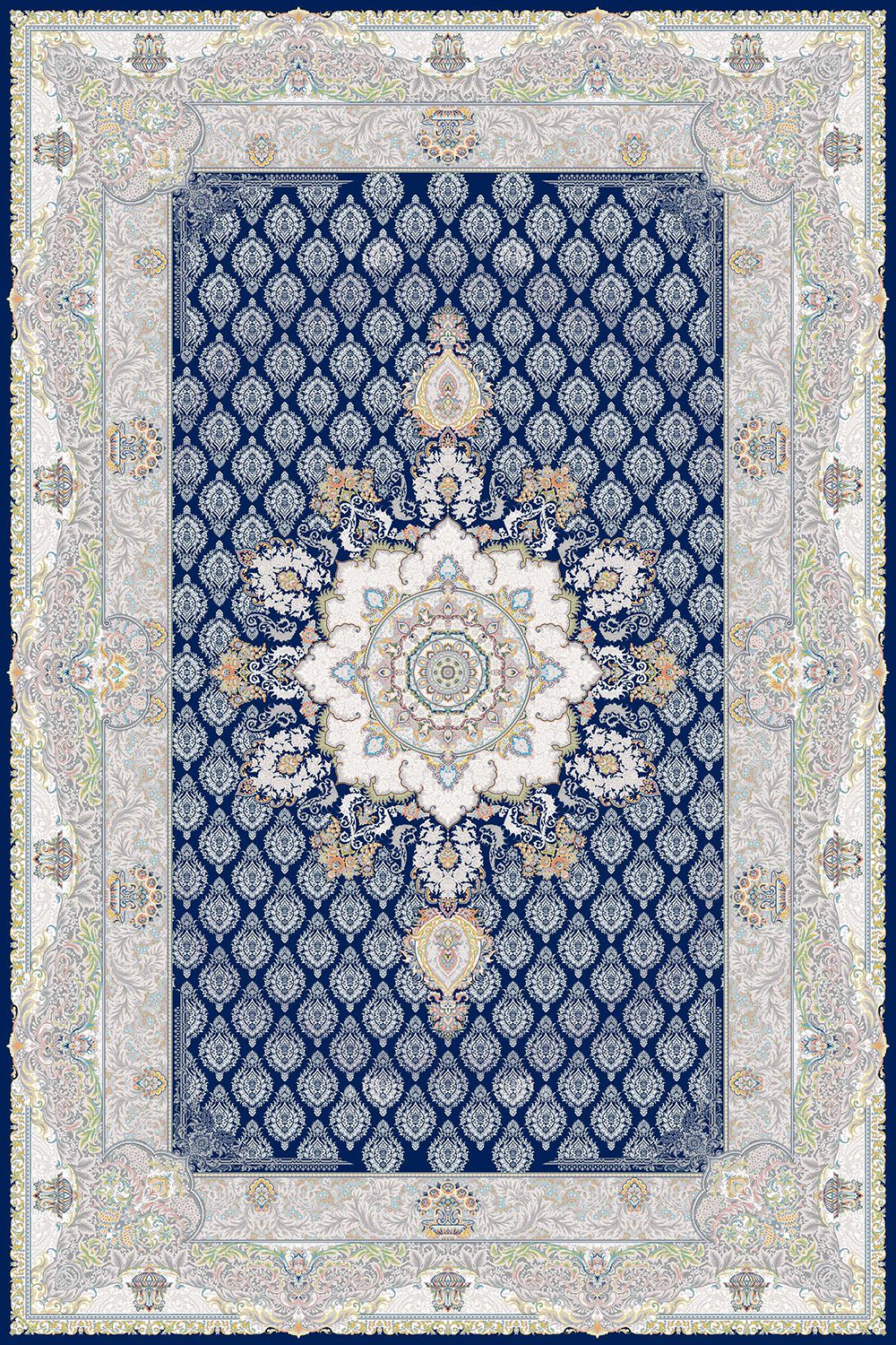 ویژگی و مشخصات فرش ماشینی کد 3526 کلکسیون اشرافی سرمه ای: