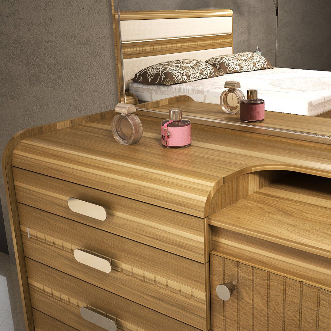 – زیر تخت مانلیا چهار کشو بسیار عمیق کار شده است. پاتختی های کنار تخت دارای سه کشو میباشد و میز آرایش سرویس خواب مانلیا دارای چهار کشو میباشد که کشو اول میز آرایش بخش بندی شده ( مخصوص لوازم آرایش و جواهرآلات ) و سه کشو بسیار عمیق و جادار – کفی کشو ضخیم کار شده ( ام دی اف ۸ میل )