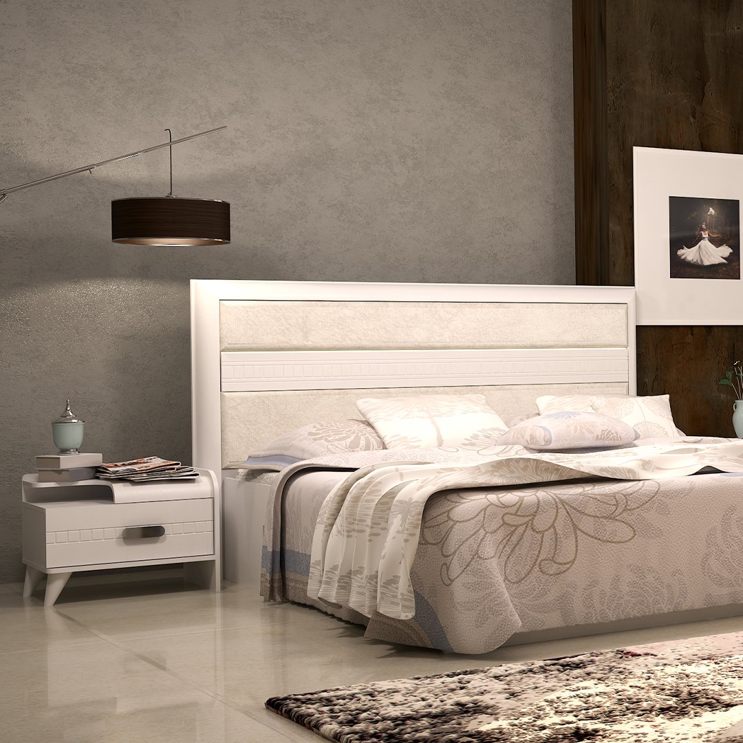 سرویس خواب دو نفره مانلیا سفید، ترکیبی بی‌نظیر از خلاقیت، زیبایی و کارایی است. طراحی منحنی در قاب کلگی، لبه‌های میز آرایش و پاتختی، جلوه‌ای تزئینی و متمایز به این مجموعه می‌بخشد. نوار LED زیر لمسه‌کوبی اولیه، با ارائه نور ملایم و دلپذیر، حال و هوای مدرنی به تخت و اتاق خواب می‌افزاید.