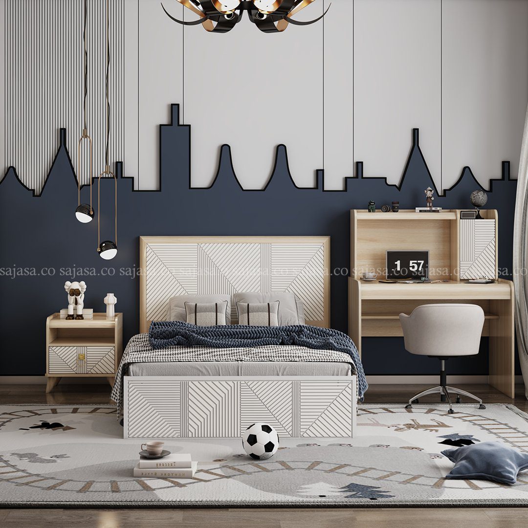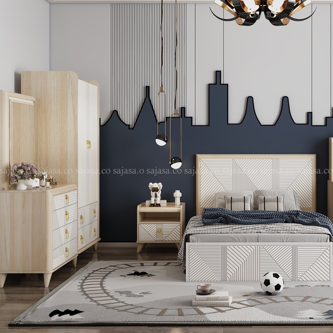 ملزومات محصول: نیم سرویس – ( تخت – میز آرایش – پاتختی – میز تحریر – کتابخانه – کمد دودرب )