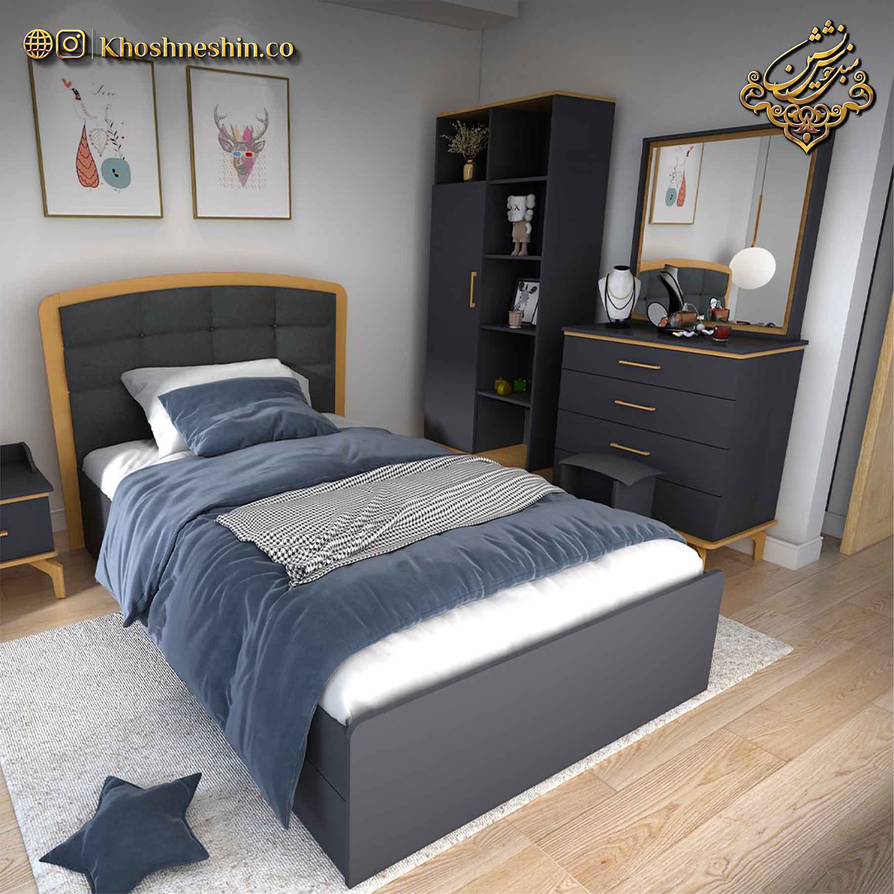 تخت خواب یک نفره رامون با طراحی مدرن و ترکیب رنگ طوسی در کنار طرح چوب طبیعی، انتخابی خاص و متفاوت برای اتاق خواب نوجوانان خوشسلیقه است. استفاده از MDF وارداتی باکیفیت و روکش چوب طبیعی، این تخت را به محصولی مقاوم و ماندگار تبدیل کرده است.