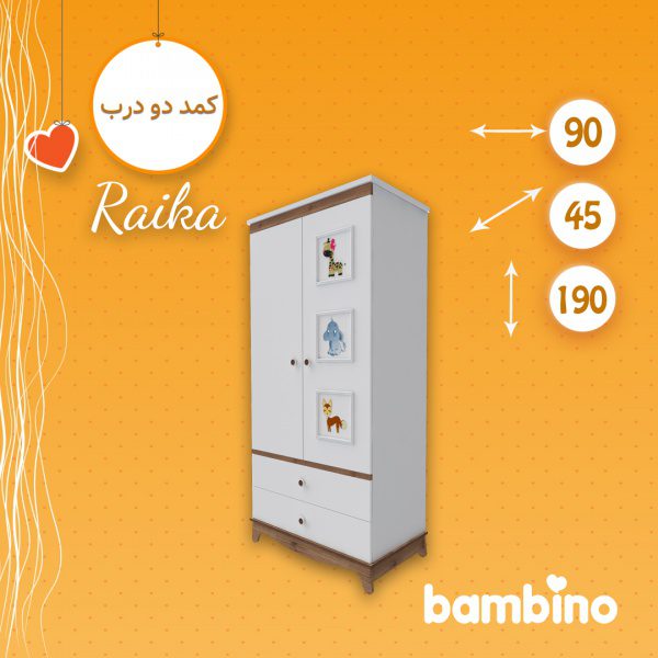 • سرویس خواب نوزاد نوجوان مدل رِیکا شامل: تخت نوزاد نوجوان چهار منظوره – کمد دو درب – ویترین تک درب – دراور سه کشو – شلف دیواری  – قاب آینه و شلف کتابخانه می‌باشد.