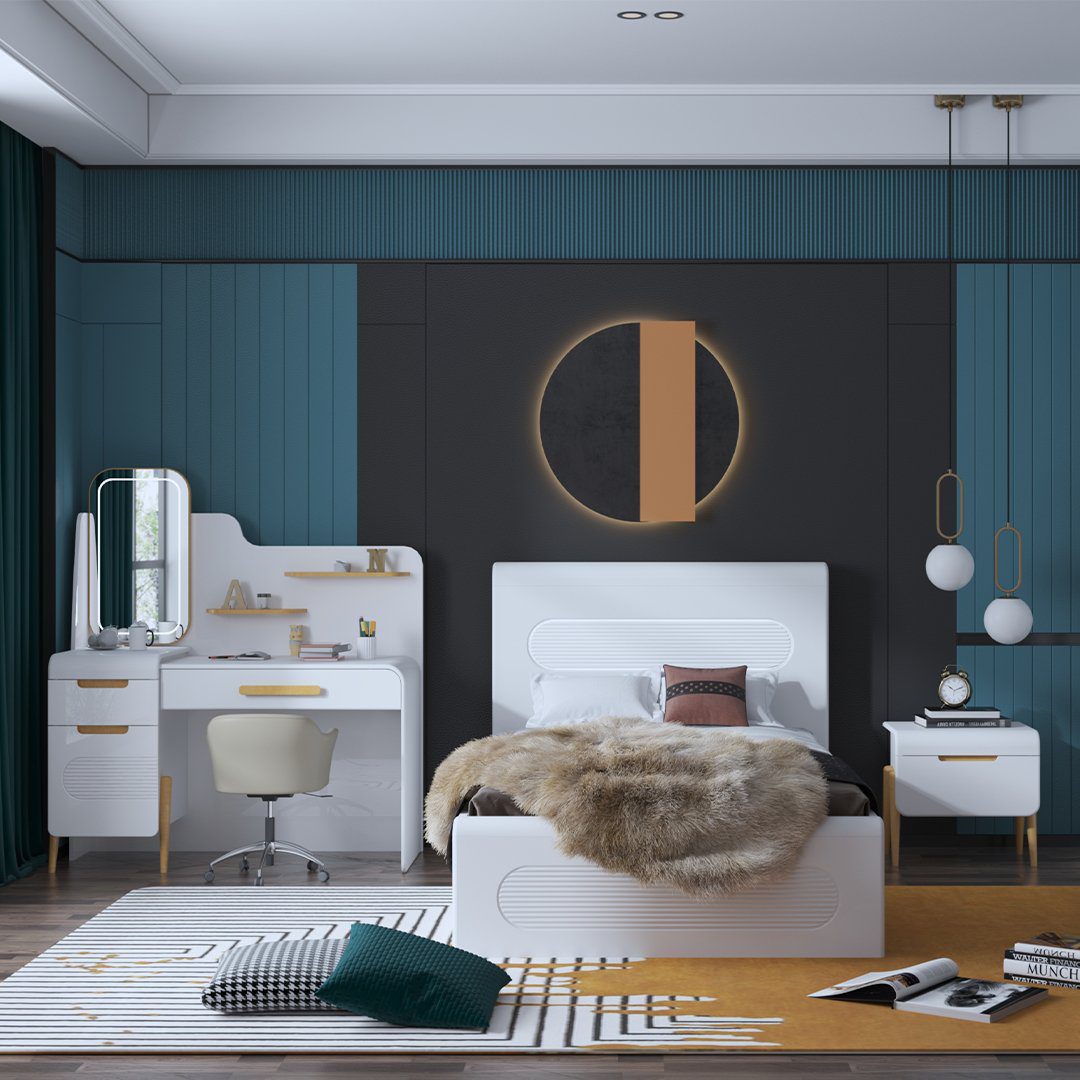 سرویس خواب نوجوان سانیا به سبک نئوکلاسیک طراحی شده است . سرویس خواب سانیا تقریبا مشابه سرویس خواب دیبا می باشد . با تفاوت اینکه کلگی تخت سانیا لمسه پارچه ای ندارد اما زیر تخت کشو کار شده است.جنس سرویس خواب از ام دی اف می باشد.و در قسمت های دستگیره وپایه ها چوب طبیعی به کار رفته است.