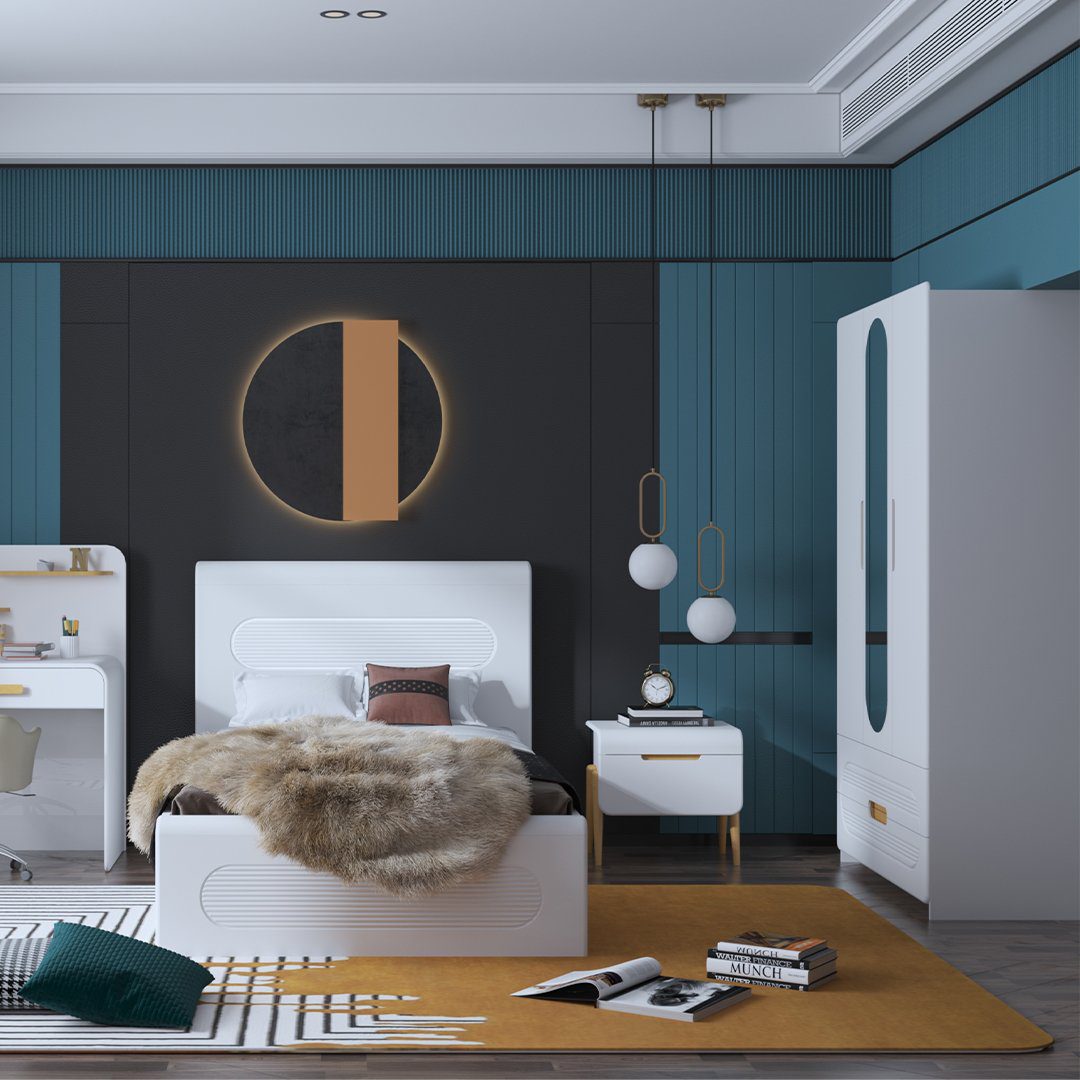 • سرویس خواب یکنفره سانیا شامل: نیم سرویس –  ( تخت – میز آرایش – پاتختی – میز تحریر – کتابخانه – کمد دودرب )