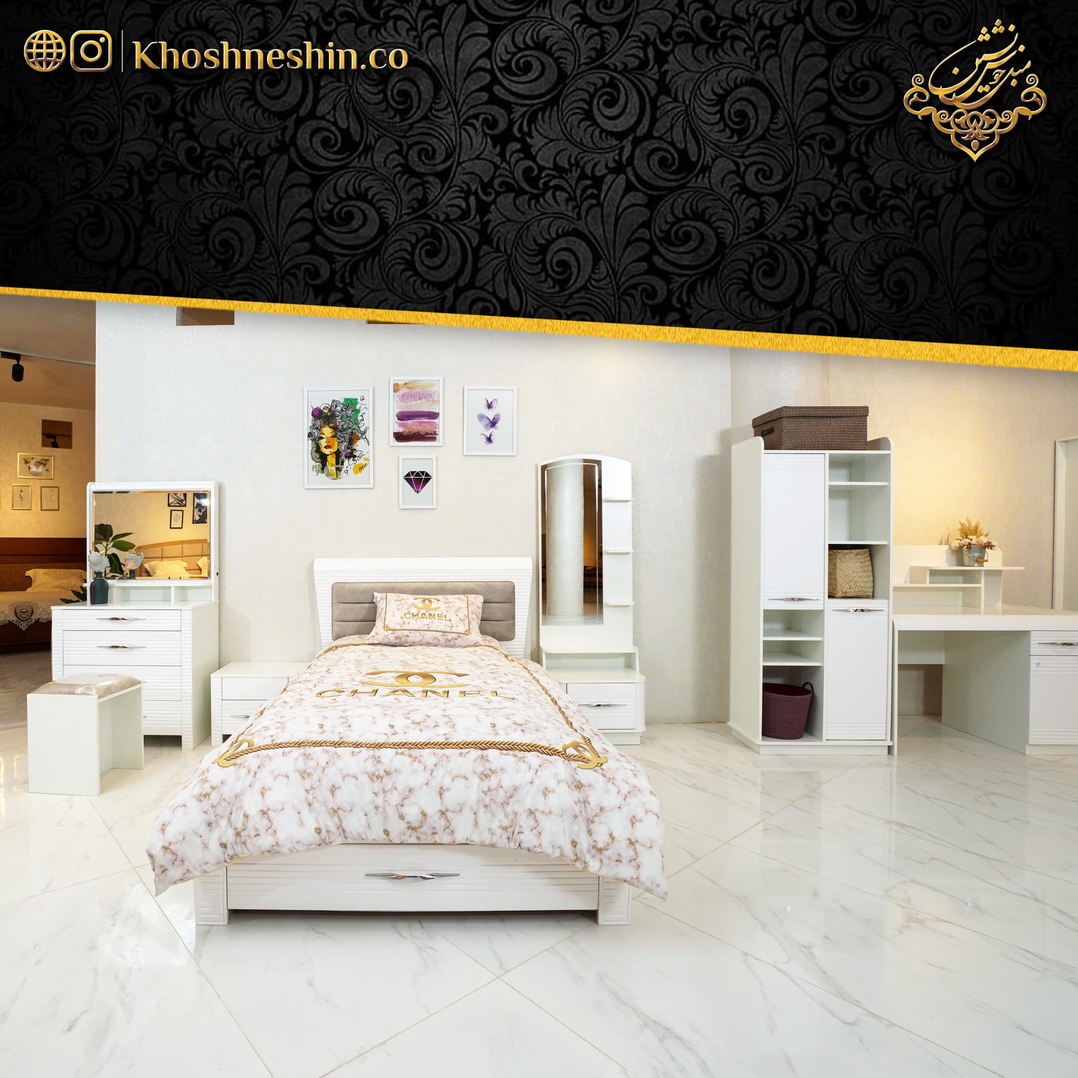 – استفاده از خطوط سی ان سی شده و دستگیرههای به رنگ استیل، به سرویس خواب نوجوان مدل رامسس، شمایل یک سرویس خواب مدرن را بخشیده است. نکته جالب دیگر در مورد این سرویس خواب، پاتختی منحصر به فرد آن است. با توجه به تعبیه آینه، این پاتختی علاوه بر کاربرد معمول پاتختیها، قابل استفاده به عنوان میز و آینه آرایش نیز میباشد. طبقه هایی نیز برای قرار دادن وسایل دکوری در قسمت کنار آینه در نظر گرفته شده است. در قسمت زیر تخت خواب نیز یک کشو در قسمت پهلو و یک کشو در قسمت پایین تخت تعبیه شده که فضای بسیار مناسبی را برای نظم دادن به لباسها و وسایل اتاق خواب مهیا میکند.