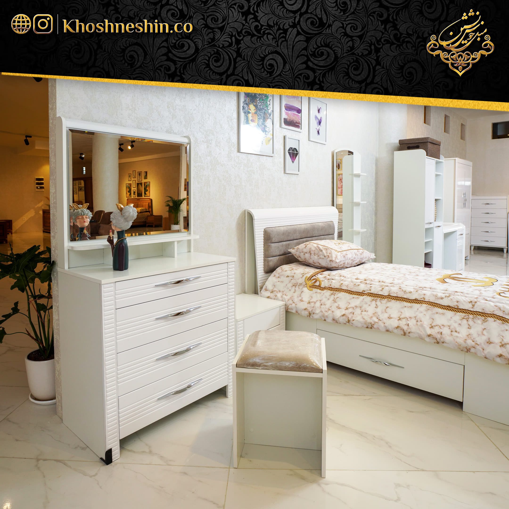 تخت خواب یک نفره ، میز، آینه آرایش و یک عدد پاتختی