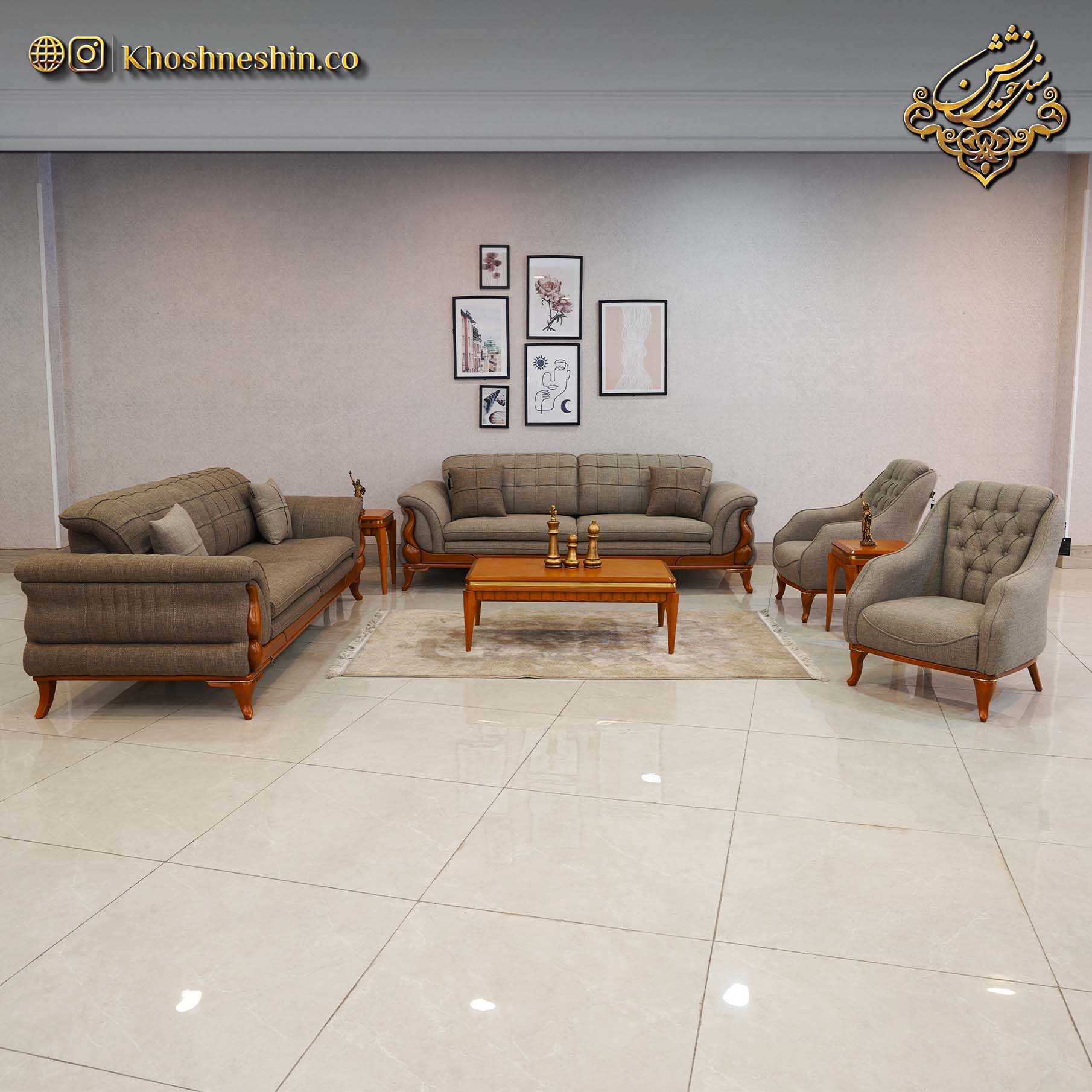 اسکلت محکم و بادوام: استفاده از چوبهای راش گرجستان با کیفیت و پارچه های ترک یا صادراتی مقاوم برای تضمین طول عمر مبلمان.